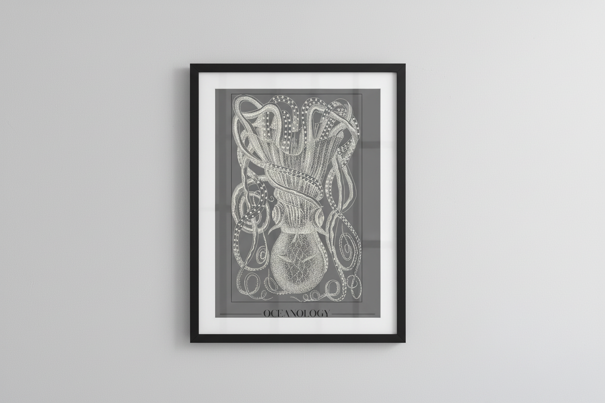 Titled "Oceanology," this piece transforms the mysterious octopus into a work of art, perfect for adding a touch of coastal elegance to any room.